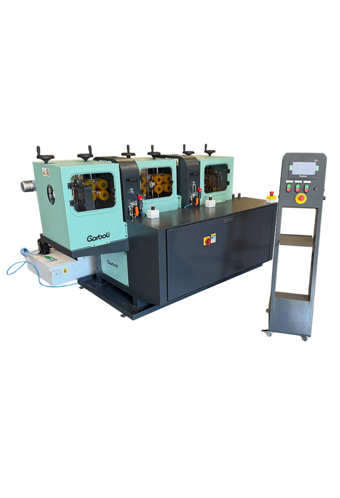 This special version is equipped with feed systems and laser gauge devices installed at both the machine entrance and exit. These instruments allow real-time monitoring of stock removal and precise verification of workpiece dimensions throughout the grinding and polishing process.