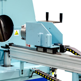 Sistema de abastecimento frontal com dispositivo de fixação e guias deslizantes de esferas recirculantes para abastecimento manual que permite segurar e processar peças em forma ou torneadas até um comprimento máximo de 1000 mm.